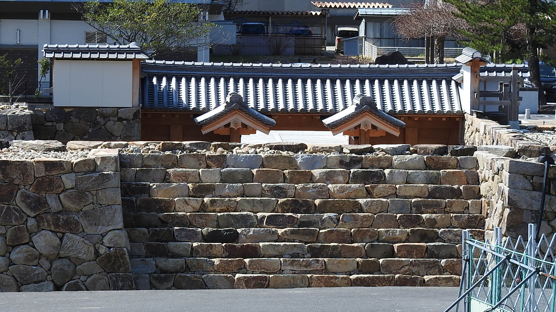 大手門裏の雁木積の石垣も完成。5月からは櫓御門の復元にかかります。