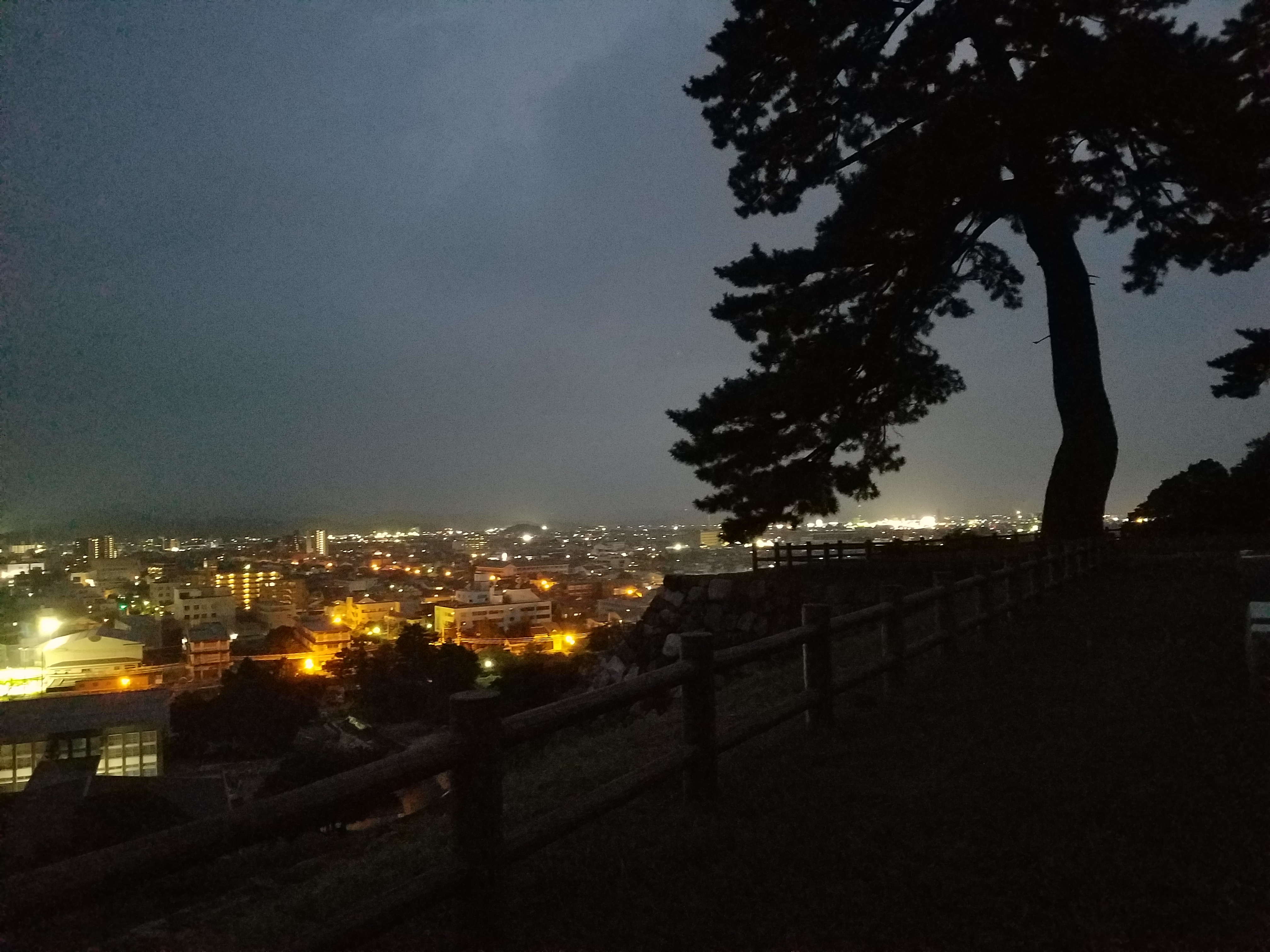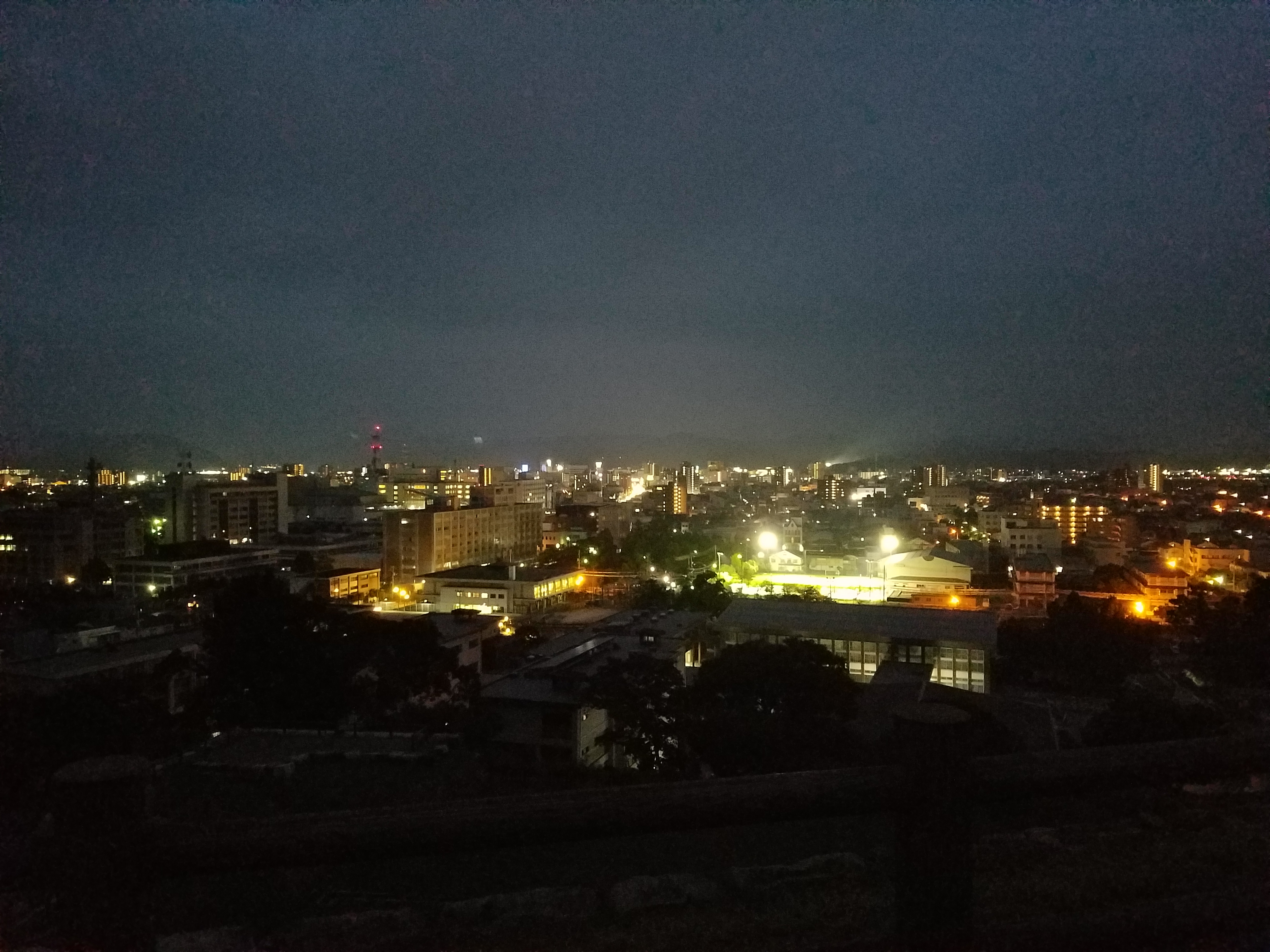 鳥取城・天球丸(山下の丸の最高地・海抜52m)から見た市街地の夜景