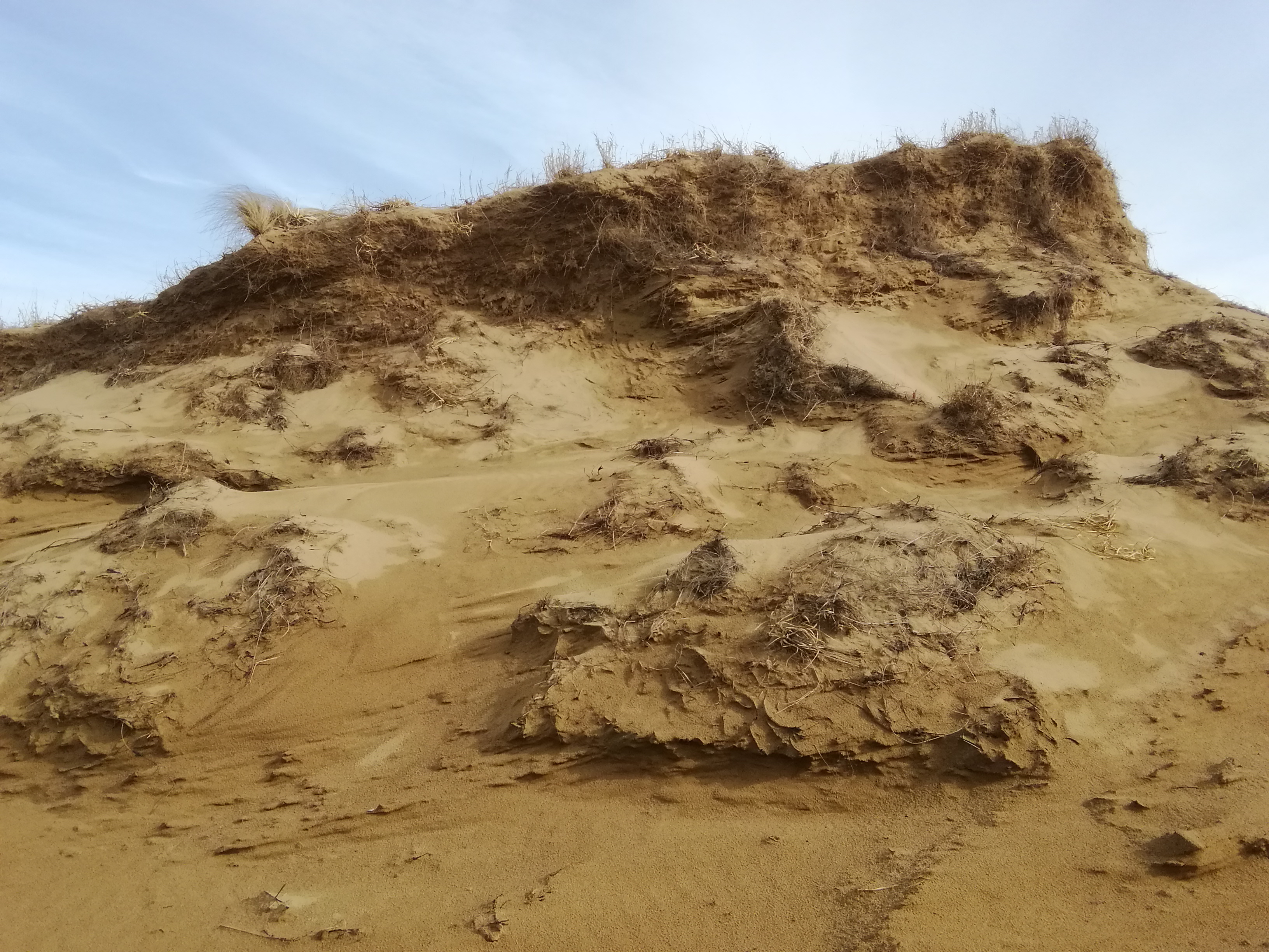 砂塚の丘は飛砂によって削られ植物が崩落、大きく地形が変化します。